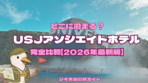「USJ周辺おすすめホテル3選」では、立地・料金・特徴をわかりやすく比較しています。快適さ重視のホテルからコスパ重視の宿まで、旅行スタイルに合わせて選べるので、宿泊先選びの参考にぜひご覧ください👇